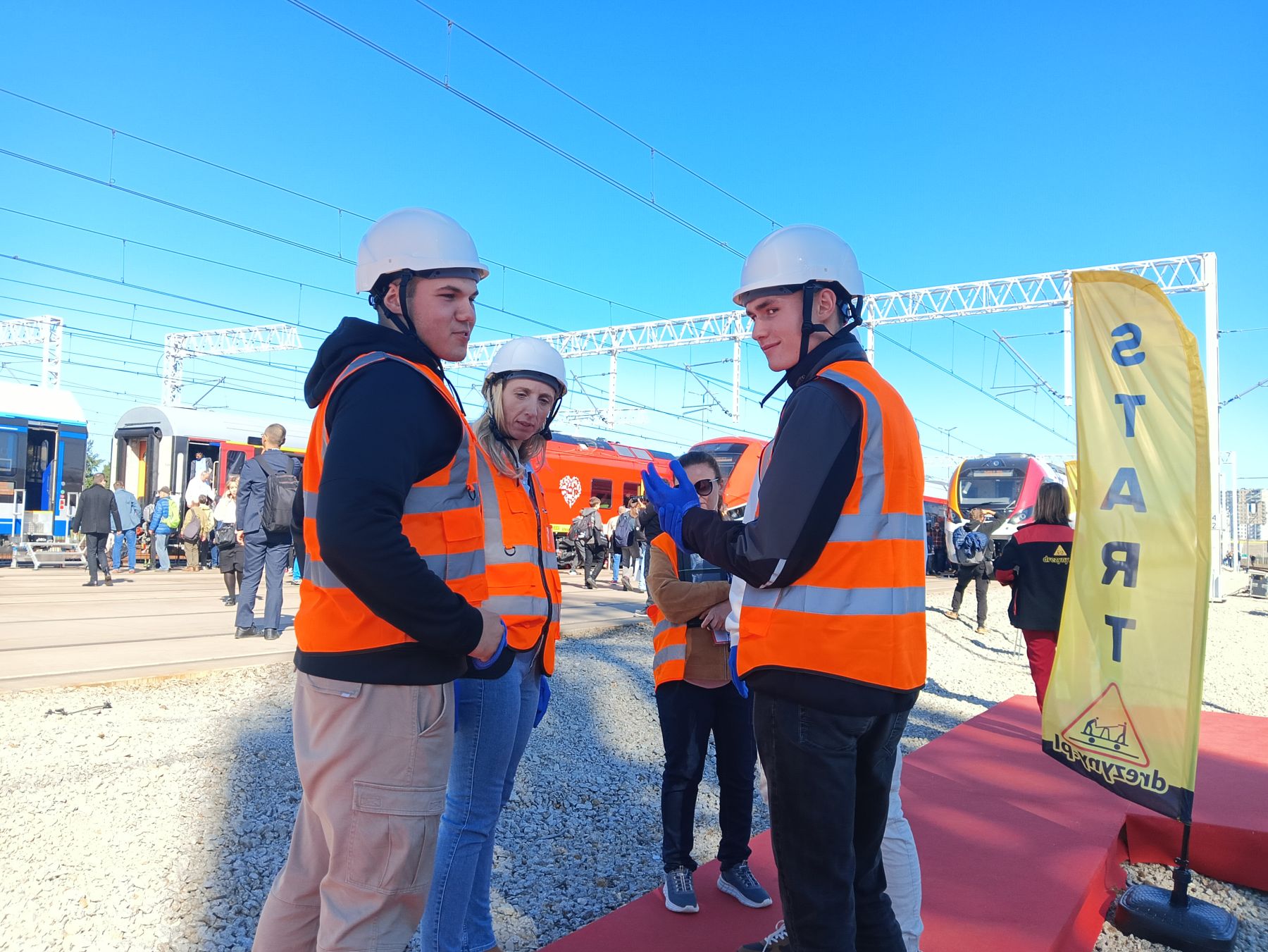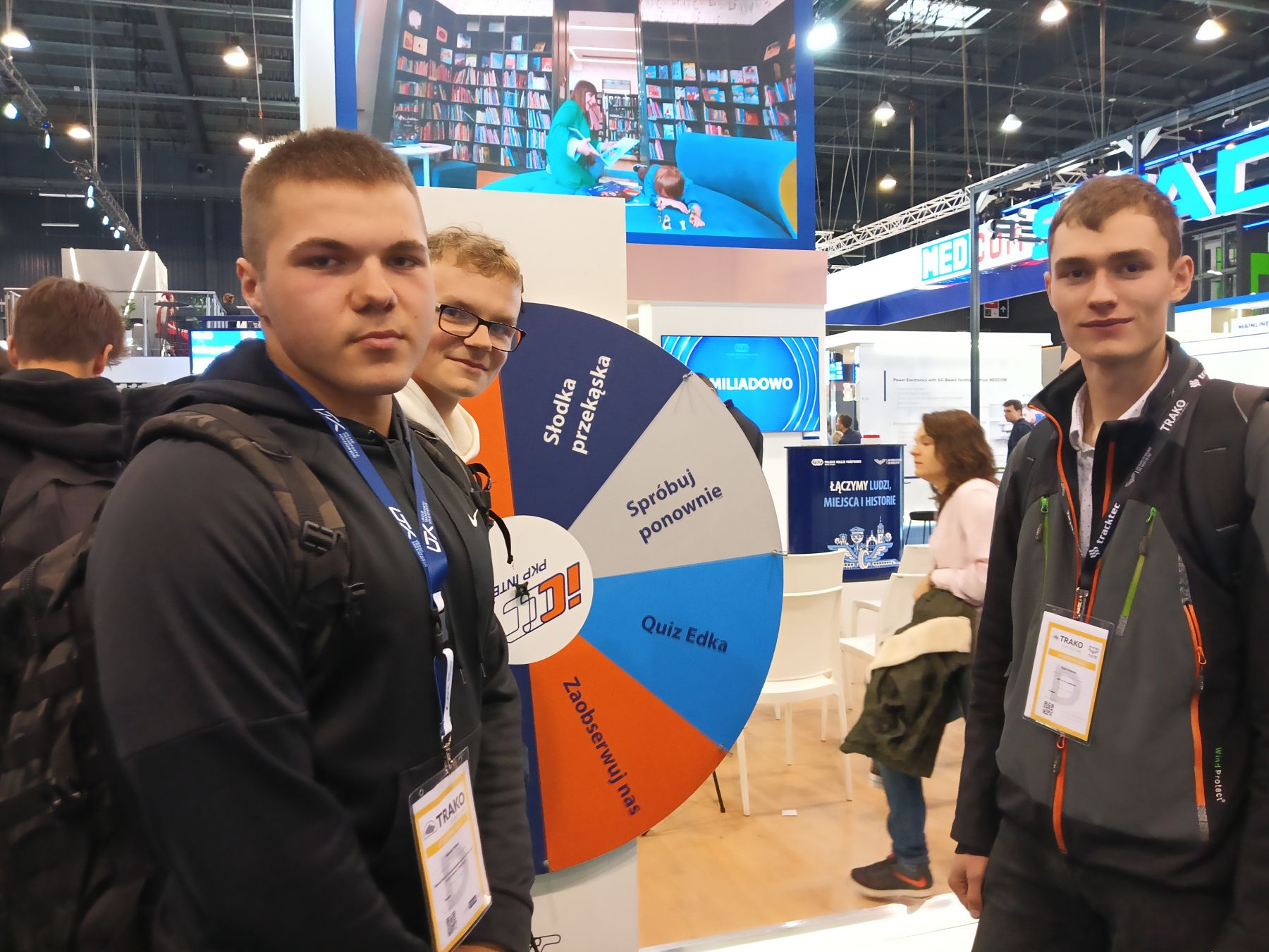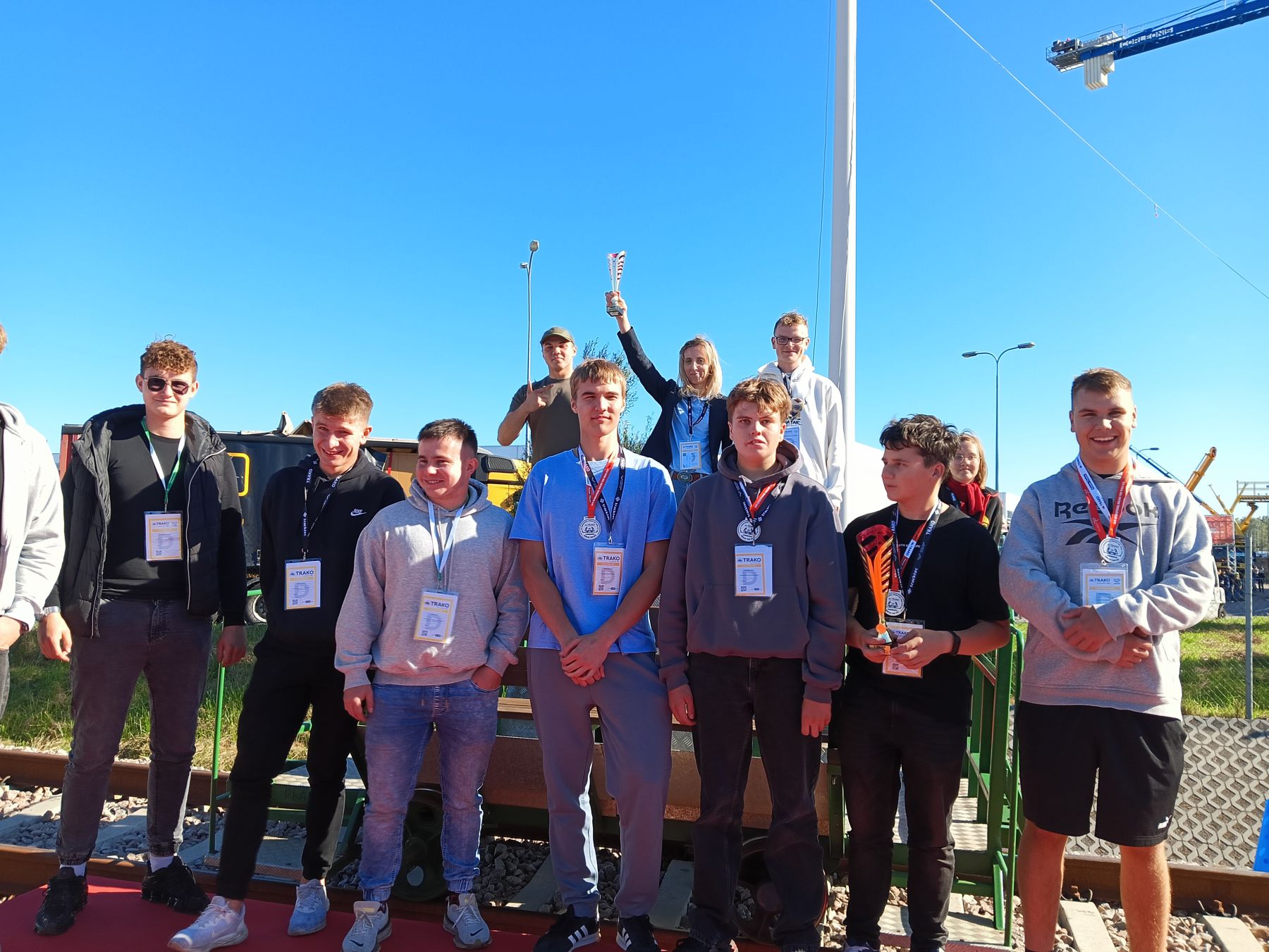 W dniu 26.09.2025r uczniowie klasy 4d i 5c z opiekunami p. Martą Karlikowską - Grabarczyk i p.Moniką Łopuską uczestniczyli w Dniu Edukacji i Kariery na 16 Międzynarodowych Targach Kolejowych TRAKO w Gdańsku, gdzie spotkała się młodzież ze szkół kolejowych z całej Polski. Targi przyniosły uczniom z naszej szkoły wiele nowych doświadczeń i wrażeń. Mogliśmy odwiedzić stanowiska branżowych wystawców i porozmawiać na interesujące nas tematy. Dużym zainteresowaniem cieszyła się wystawa najnowocześniejszych pojazdów kolejowych, maszyn drogowych i urządzeń do zapewnienia bezpieczeństwa ruchu kolejowego na sieci PKP. Mieliśmy okazję, poczuć się jak prawdziwy maszynista, siedząc za sterami pociągu. Międzyczasie znaleźliśmy trochę wytchnienia w czasie wydarzenia pt:”Przyszłość kolei – jak będzie wyglądać Twoja kariera w nowoczesnym transporcie?”. Na podsumowanie wrażeń dnia uczestniczyliśmy w konkursie drezyn, w którym zajęliśmy PIERWSZE miejsce. Brawo!!!