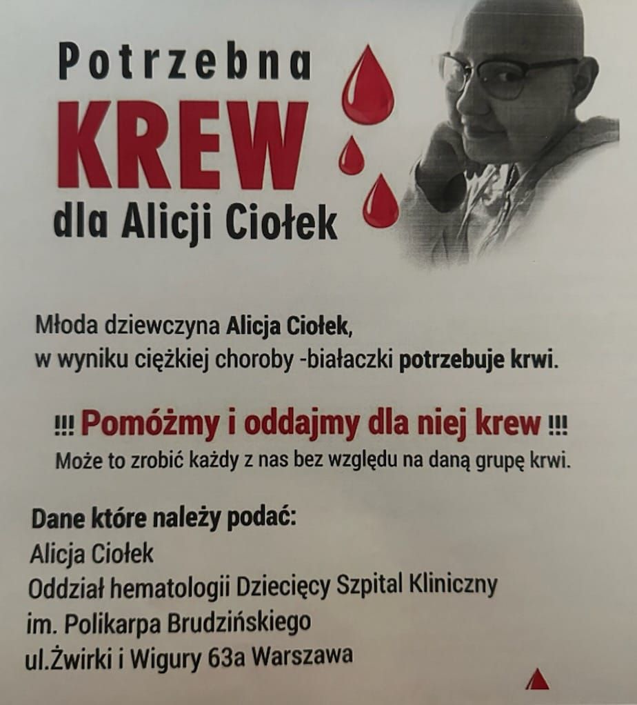 Nasi uczniowie są otwarci na pomoc, wykazali gotowość i wsparcie dla Alicji, która potrzebuje krwi.